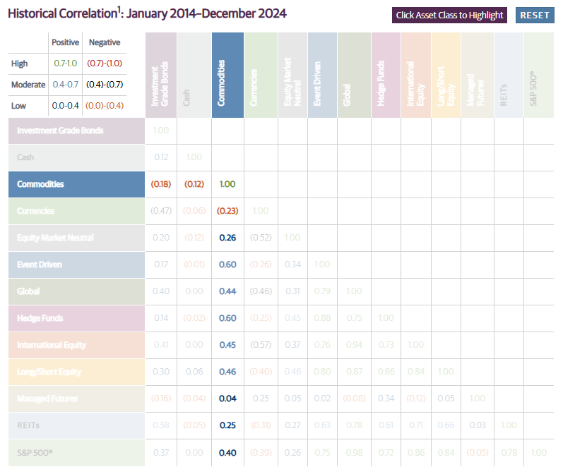 In addition to acting as an inflationary hedge, DBC can also be utilized for its differentiated returns with respect to the broader equities markets. Commodity performance has historically shown low correlation to equity performance, potentially making an investment in DBC a hedge against adverse market performance.