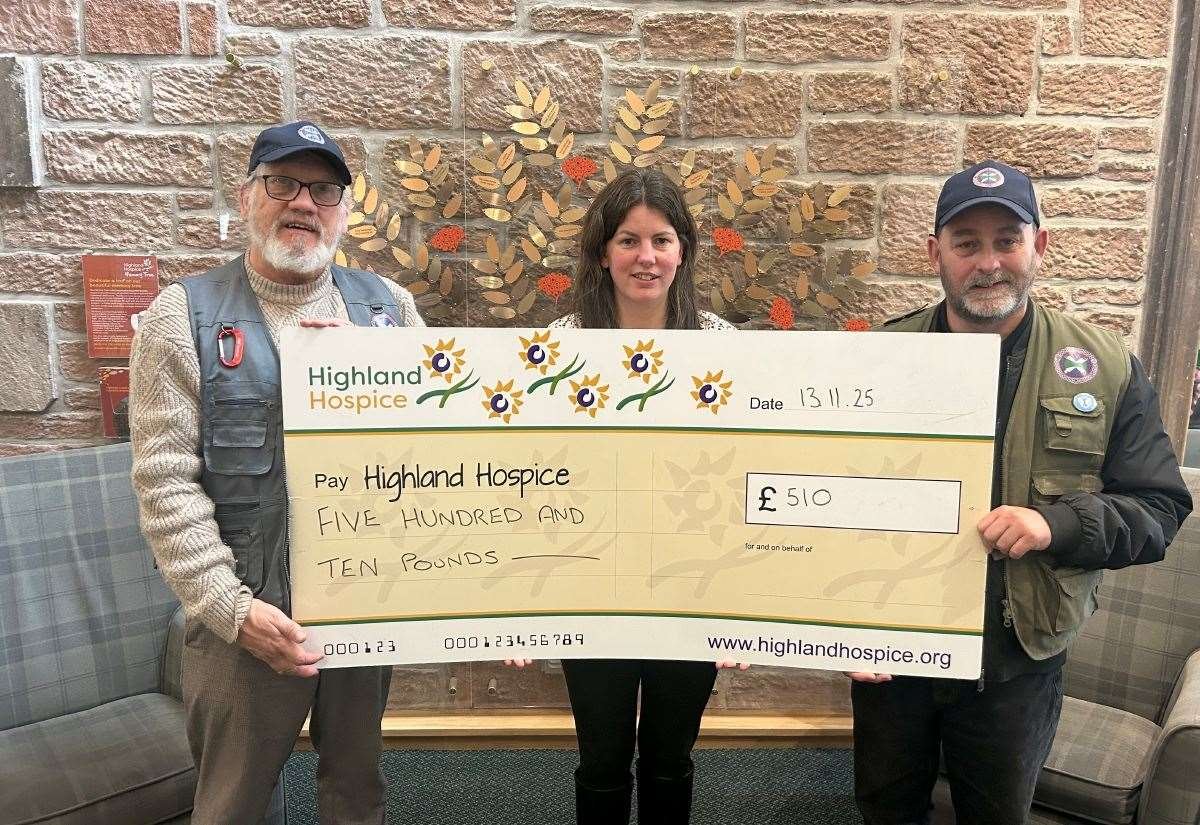 Terry Kay and John Nevyn MacDonald, of Highland Metal Detectorists, handed over £510 each to SNAP, a charity supporting children with additional needs, and Highland Hospice, which provides palliative care in the Highlands.