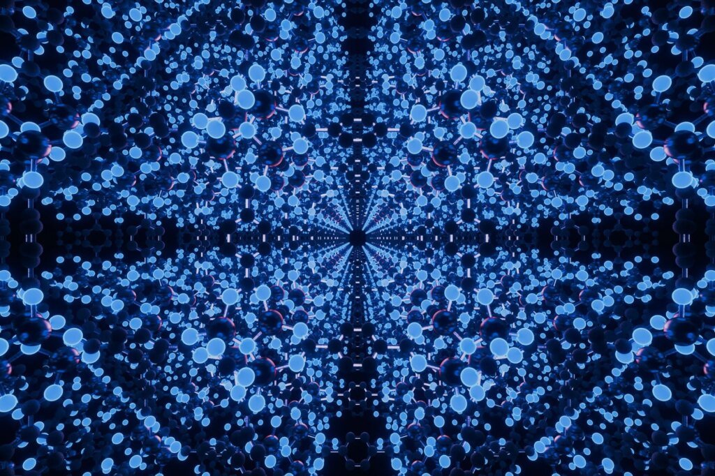 3D render of the MOF-5 metal–organic framework showing a repeating cubic lattice of zinc clusters and organic linkers, illustrating the ordered structure of a porous nanomaterial. Image Credit: Lynn Paeonia/Shutterstock.com