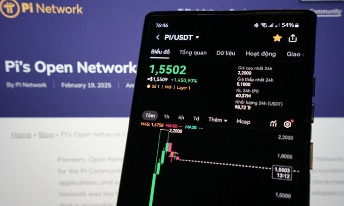 Pi price listed on a cryptocurrency exchange after its Open Network launch on Feb. 20, 2025. Photo by VnExpress/Duy Phong