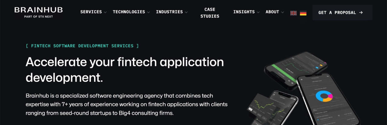 | Brainhub | 4.9/5 | 600+ | Multi-stack fintech | Credit Suisse, PwC |