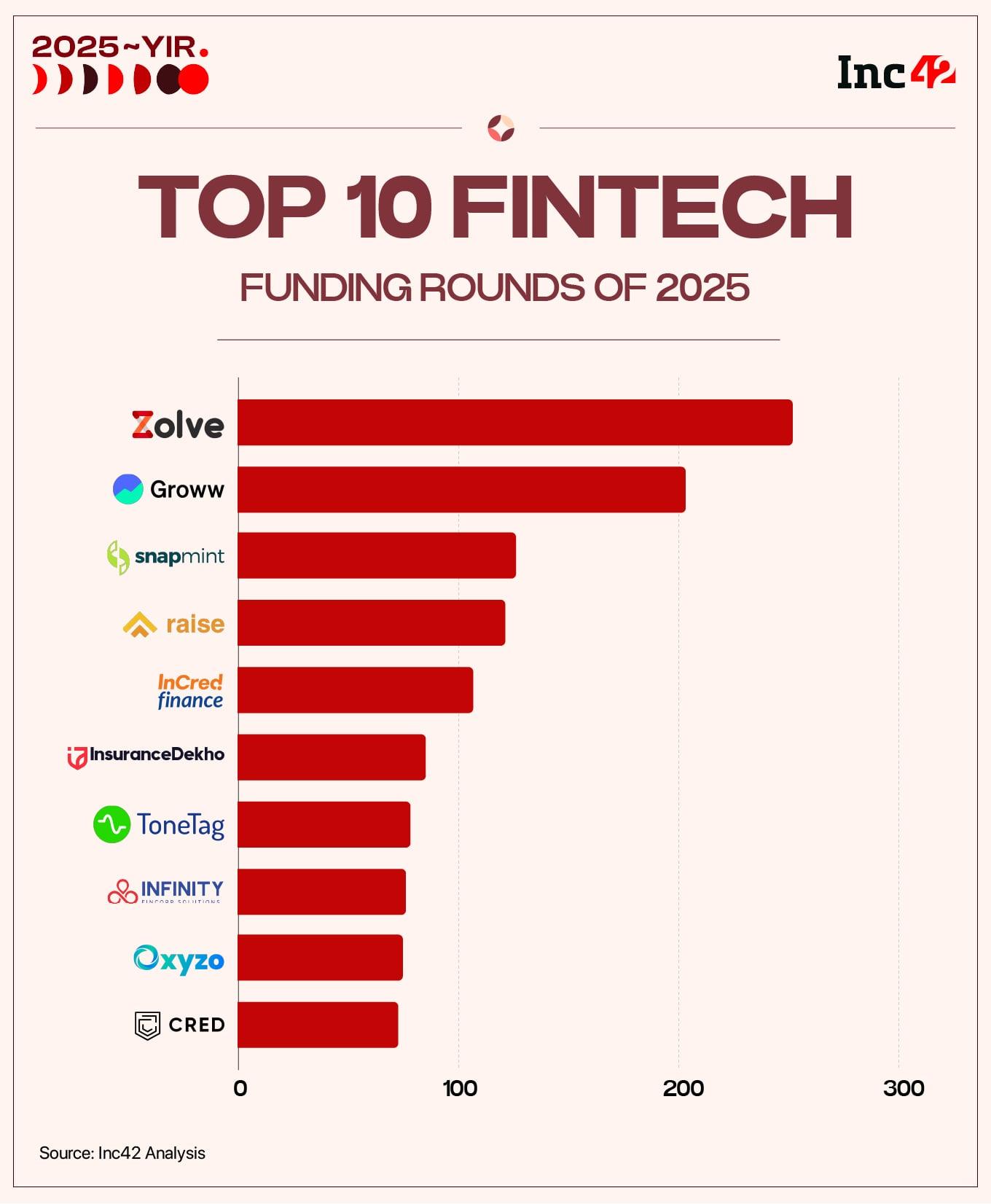 Important to mention that fintech dominated the top end of the funding spectrum. Two of the largest startup raises of 2025 came from fintech: cross-border neobanking platform Zolve raised $251 Mn, while stockbroking major Groww secured $202 Mn in a pre-IPO Series F round before going public later in the year.