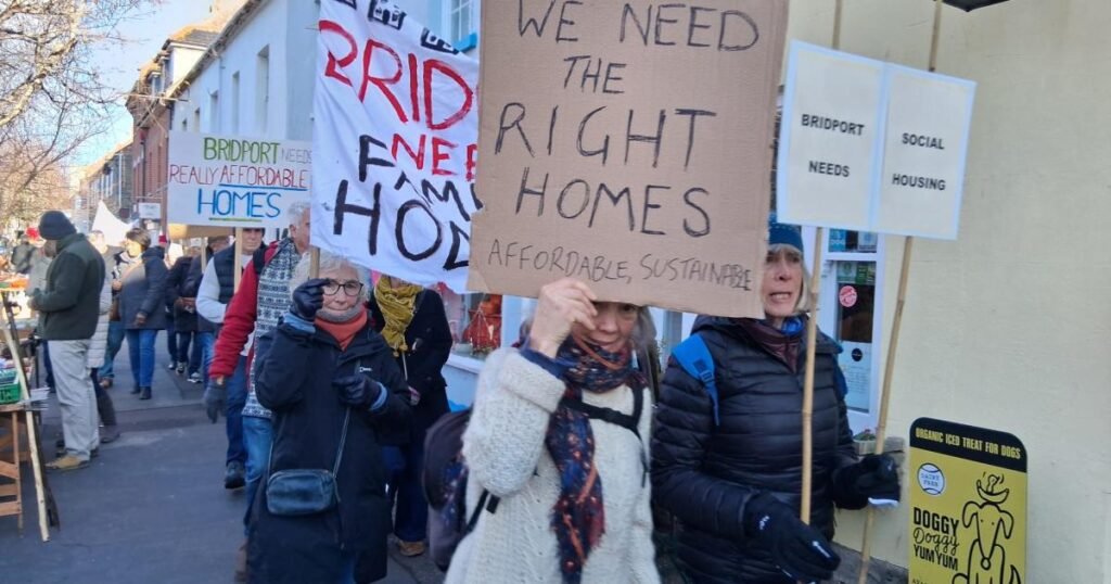 Community organisation Homes Bridport People Can Afford organised the demonstration with local councillors Sarah Carney and Anne Rickard, expressing their own personal views on the proposals and an urged the need for affordable housing for young families and working people over retirement homes.