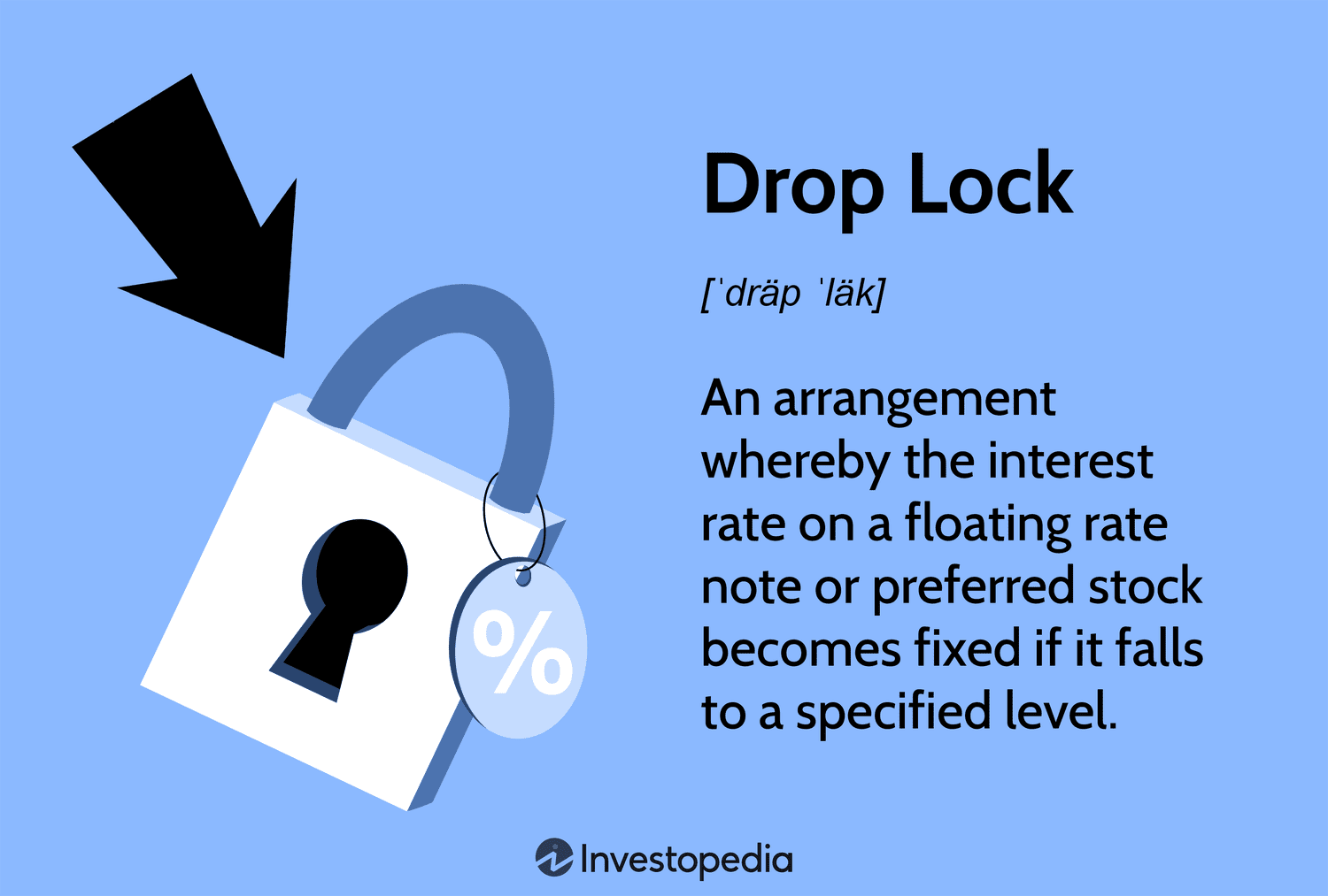 • A drop lock is a feature of a floating-rate note that converts the floating rate to a fixed rate at a predetermined level.