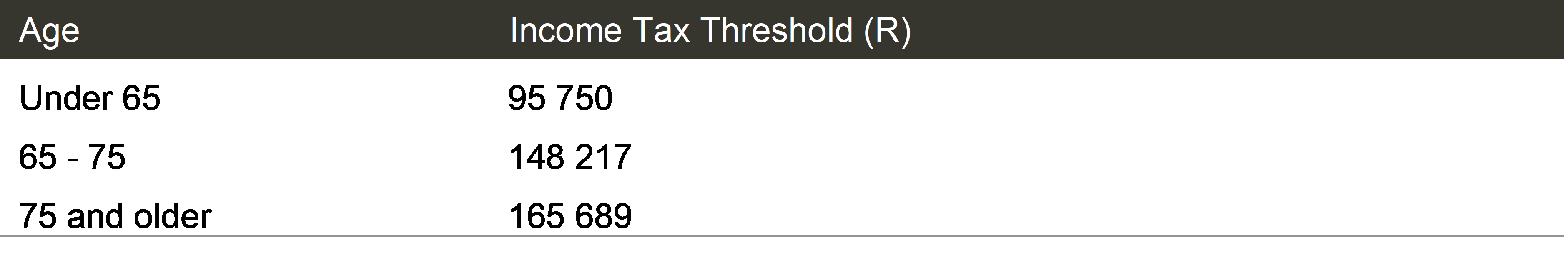 Product providers administering these annuities are required to deduct income tax monthly using standard income tax tables and pay this over to the South African Revenue Service (Sars). Retirees receive an IRP5 for this income, similar to the IRP5 they received while employed.