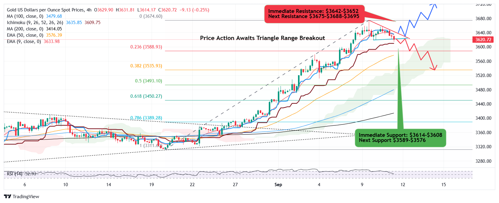 Gold price reaction to $3610 Support and $3642 Resistance.