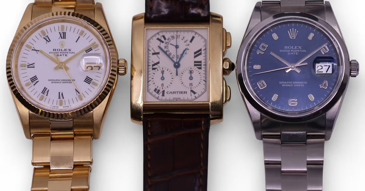 Meanwhile, an 18-carat gold Rolex Oyster Date wristwatch with a white face and roman numeral dial (€9,500-€11,500) and an 18-carat Cartier Tank Française Chronograph wristwatch (€5,000-€6,000) are among the watches for sale at Weldon’s auction. The latter includes three sub-dials that track seconds, minutes and hours for anyone in need of such exact measurements for sporting or other pursuits. The Weldon auction also has a stainless steel Rolex Oyster Date wristwatch with a guide price of €3,000-€4,000. Most guide prices for watches at auction are substantially below the retail price of an equivalent watch.