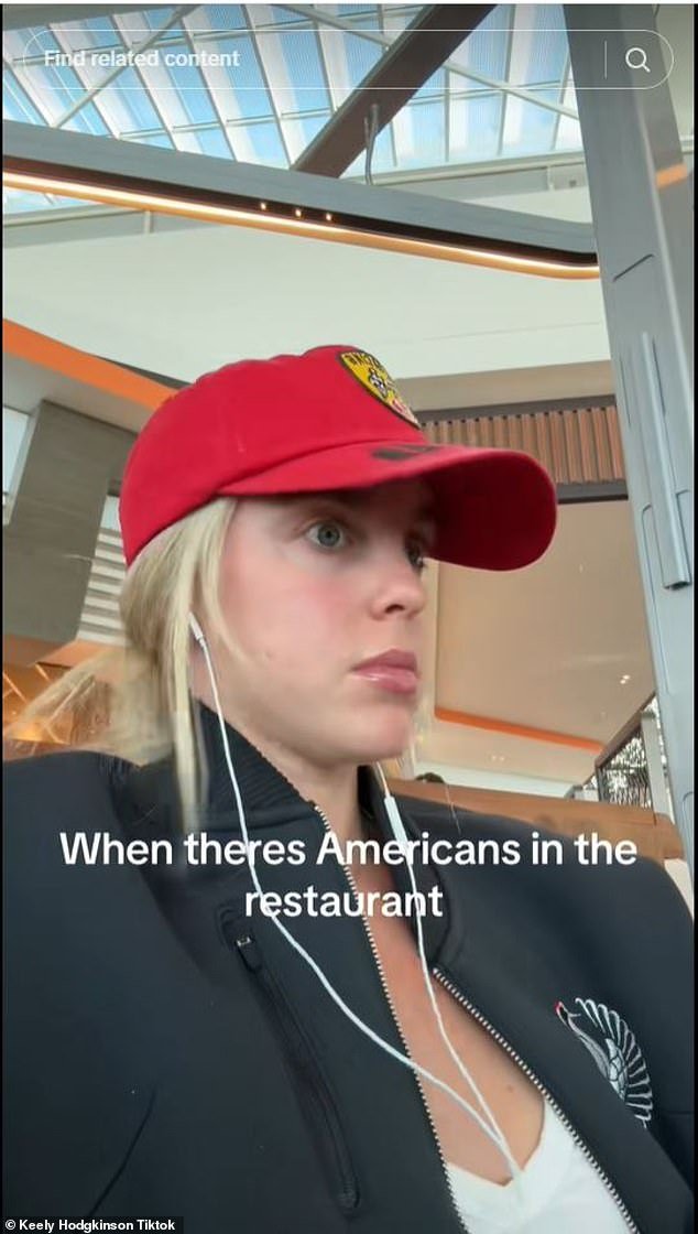Keely captioned the video: ‘When there are Americans in the restaurant’ and ‘They’re really the loudest in the room’.