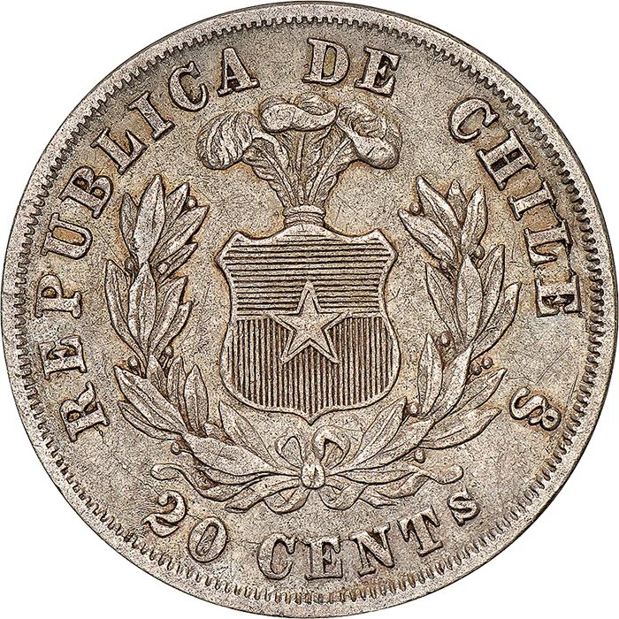 We are updating many prices in the database where a coin’s value is based on the precious metal price. An example where wholesale changes were made is the 20 centavos of Chile from 1867–1879, KM-138.1. Courtesy of Numismatic Guaranty Co.