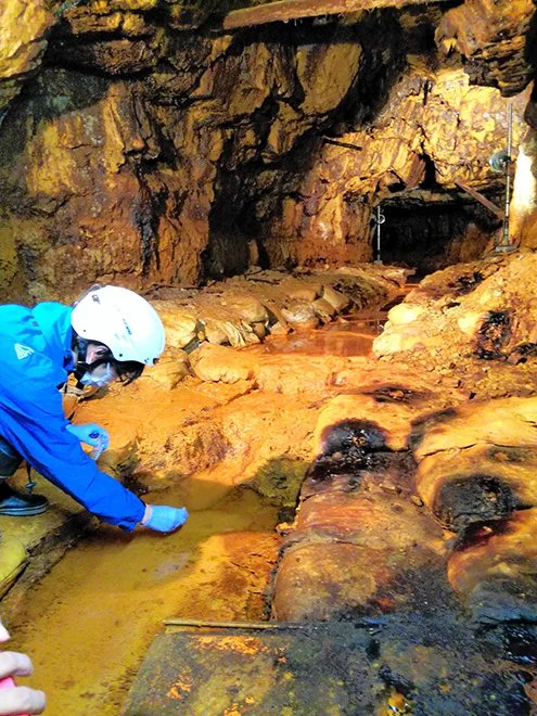 Mitsunobu, who has been studying soil and drainage from old mines for micro-organisms, took note of the geological characteristics of the Shikoku region.